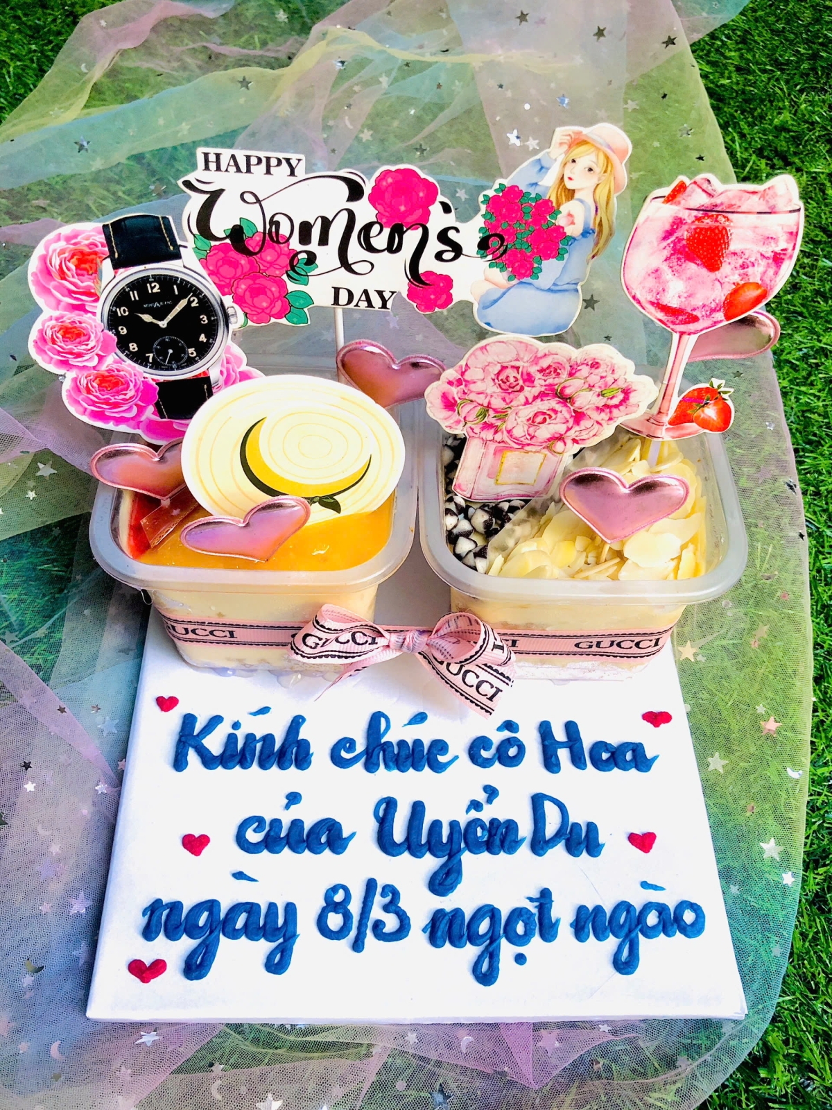 Set 2 hộp Cô gái 8 + nâng đế ghi nhiều chữ
